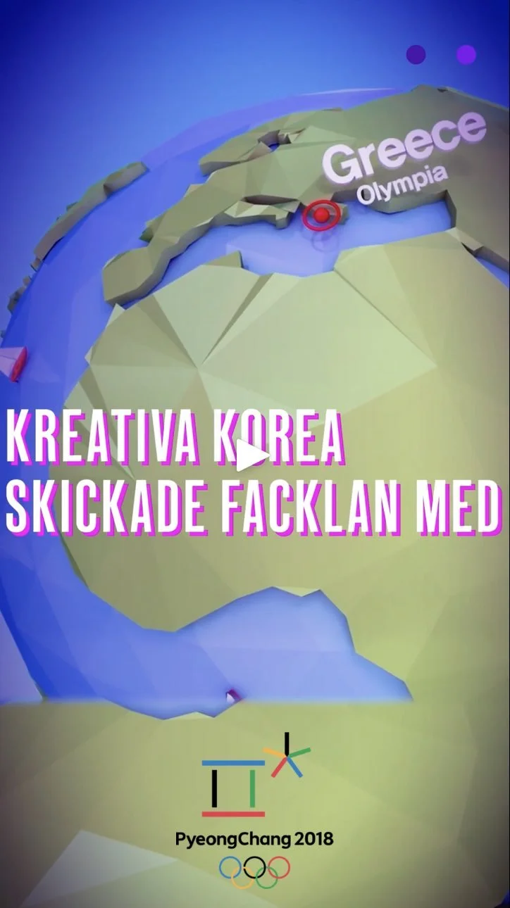 Changing Film was commissioned to produce five hundred ‘snaps’ for Eurosport's official Snapchat channel in Scandinavia. We created, during a live watch of the Olympic Games in Pyeongchang, ten x snaps a day for fifty days. All snaps included graphic design, animation and copy which we created in New York with live footage sent to us from the games in South Korea.